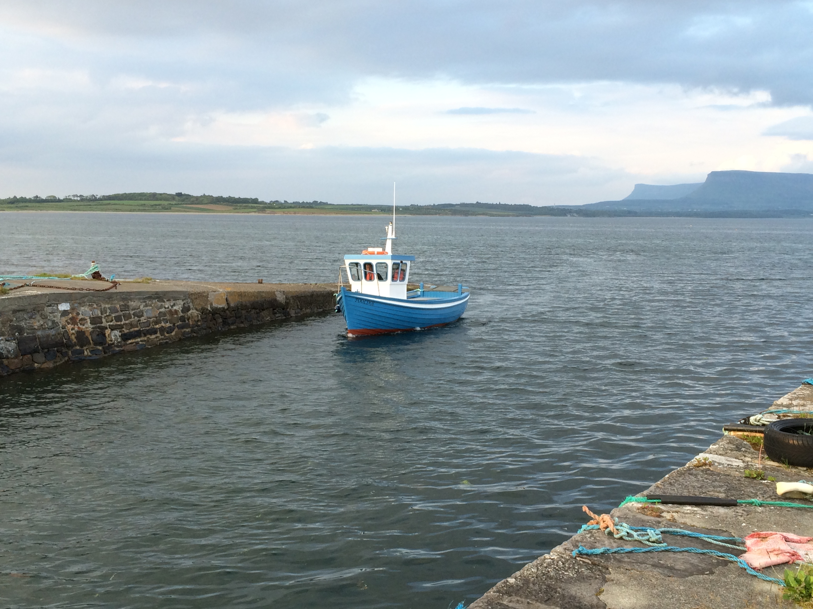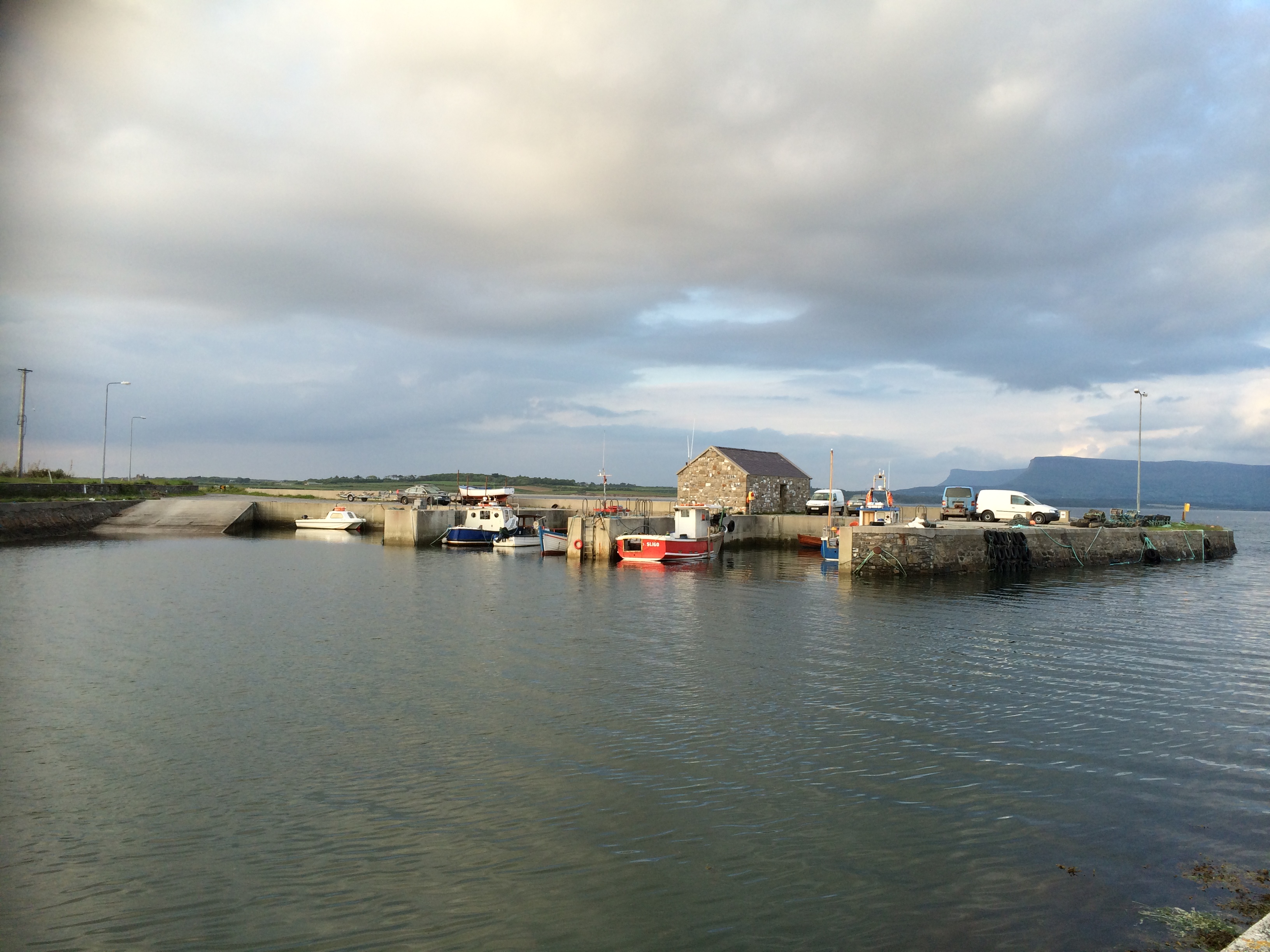 Turn left at Jordan’s pub and off down the road with you passing Ardtarmon castle on the left and turn right at Raghley up around the headland past the Puffin’ hole over the top of the hill and there it is….Raghley Harbour.