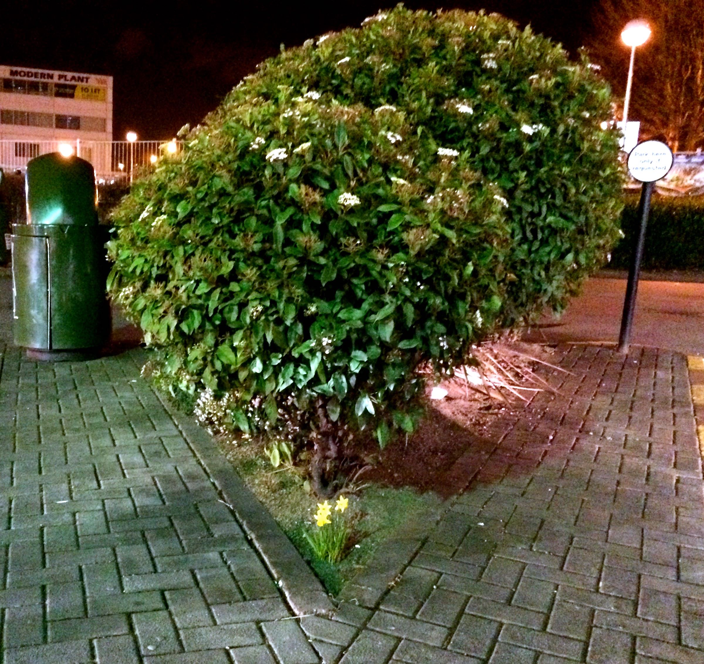Spot the little Daffodils blooming against the odds under a rather large bush in a big Mc Donald’s car park! 🙂